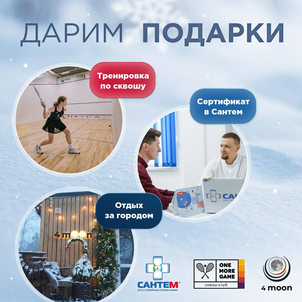 Сеть семейных поликлиник «Сантем», сквош-клуб ONE MORE GAME и дом отдыха «4 Moon» объединились, чтобы подарить вам отдых и восстановление✨