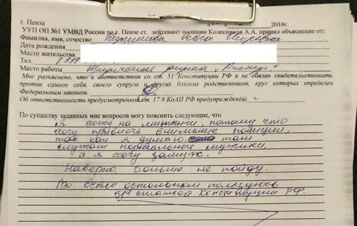 Утро начинается не с кофе. Приходил участковый, чтобы поставить меня на учет по поводу, цитирую, моего «инакомыслия». Написала им объяснительную, почему хожу на митинги. Решила подыграть в их абсурде, настроение хорошее 🙂