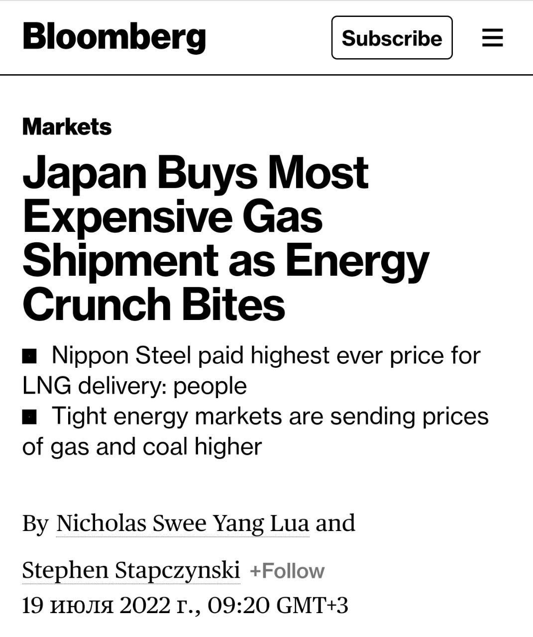 Самый дорогой газ в истории страны закупила японская сталелитейная компания Nippon Steel для нужд производства .