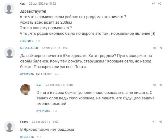 В соцсетях жители поселков считают, что на их проблемы давно не обращают внимания, а на жалобы тюменцев реагируют как на капризы. Пишут, что если бы оптимизация не прошлась по ним катком, то и деревни бы не умирали. Сейчас ИЖС снова популярно, но кто ж к ним поедет строиться, если даже рожать скоро будут с повитухами.