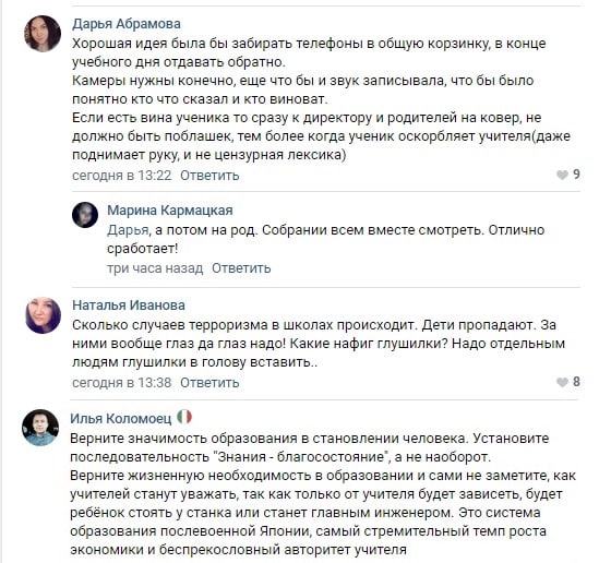 В соцсетях тюменцы сделали акцент на смартфонах. Одни считают, что глушить сотовую связь не надо, а правильно забирать гаджеты хотя бы на время уроков. Другие – против, ссылаясь на тревожную криминальную обстановку в городе. Кстати, большинство хотят изменений в системе школьного образования, но видят проблемы не в глушилках и буллинге, а в отсутствии значимости образования как жизненной необходимости.