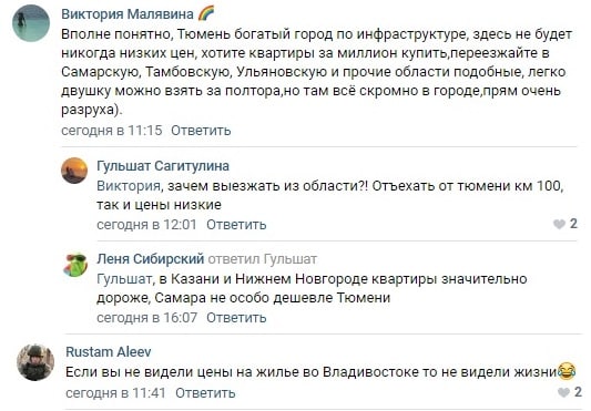 В соцсетях тюменцы не удивляются вхождению Тюмени в топ-10, ведь льготная ипотека расходится как горячие пирожки. Рост по сравнению с прошлым годом составил 47%. И вторичное жилье в этом сегменте занимает значительный объем.