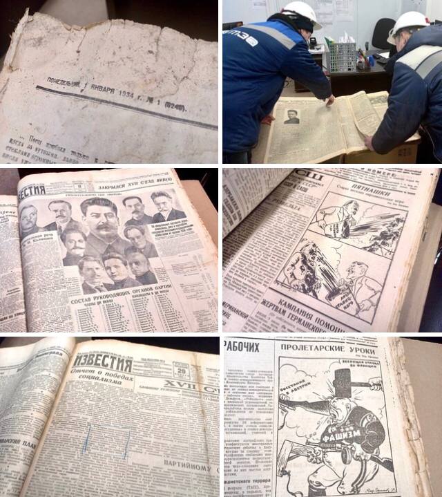 На мусоросортировочном заводе нашли газеты «Известия» 1934 года. Часть подшивок не сохранилась, но кое-что удалось спасти. В соцсетях пишут, что ТЭО пора музей ценного мусора открывать.