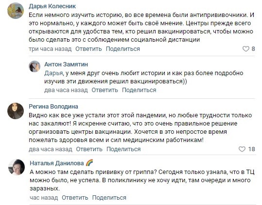 В соцсетях у губернатора развернулась хорошо знакомая всем полемика о пользе и вреде «Спутника». Те, кому не хочется идти в поликлинику нововведениям рады: места много, социальная дистанция есть. Есть и те, кто планировал посетить ТЦ, чтобы поставить прививку. Но пункты там работать больше не будут, в связи с действием ограничительных мер.