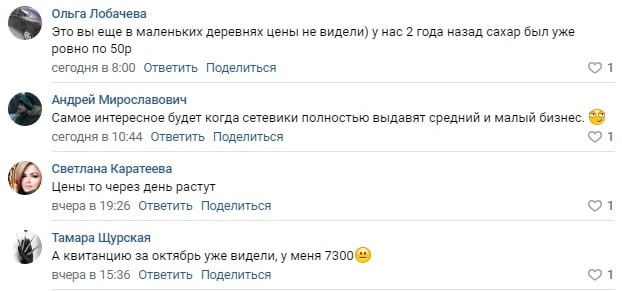В соцсетях пишут, что уже в 10 минутах от города цены на продукты выше в три раза. Считают, что сельские магазины никто не контролирует, поэтому и стоимость товара формируется с заоблачной наценкой.