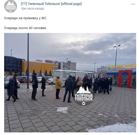 Тоболяки просят вакциномобили ставить рядом с кафе, чтобы погреться в очереди, или палатку с самоваром поставить рядом. Пишут, что люди стоят по три часа в ожидании прививки, готовы платить за горячий чаек.