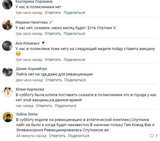 Департамент здравоохранения утверждает, что в регионе есть 5,5 тысяч доз «Спутник Лайт», но тюменцы его найти не могут. Ревакцинацию проходят с помощью первого компонента «Спутник-V» или любой другой вакцины. Пишут, что так тоже можно.