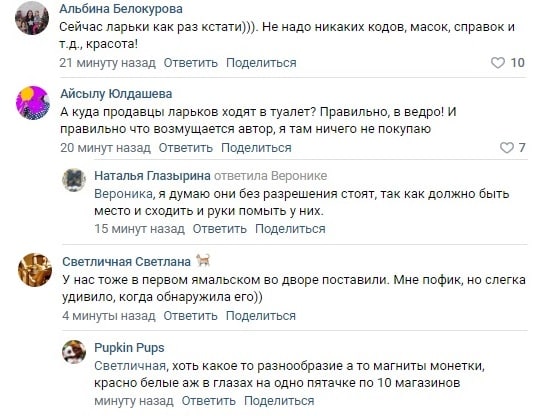 В соцсетях пишут, что везде так. Некоторым даже нравится, особенно если это «Кофе». А так да, много претензий к этой малой торговле. В первую очередь, антисанитария, которую усмотрели особо внимательные горожане.
