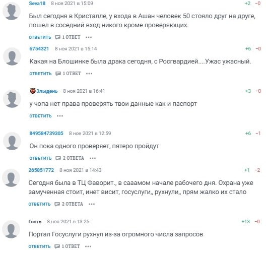 В соцсетях пишут, что жалко людей, которые толкаются в торговых центрах, хотя могли бы и онлайн заказывать все необходимое. Сочувствуют пожилым людям, которые часами стоят в МФЦ, чтобы получить QR-код, хотя им всем дома надо сидеть. Многим не понятен этот ажиотаж, все ждут снижения уровня заболеваемости. Но он пока только растет, а QR-коды уже собираются проверять при посадке на поезд, самолет и в общественный транспорт.