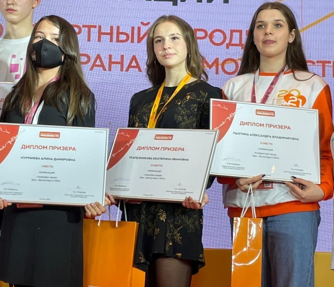 Среди победителей на международном форуме #МЫВМЕСТЕ оказалась самая юная участница Екатерина Трапезникова. Она стала призером в номинации «Здоровье нации» трека «Волонтеры и НКО». Говорит, что помогает детям выбрать свой вид спорта, поэтому придумала проект «Спортивное поколение». Живет в селе Успенка, где ее хорошо знают: активистка, спортсменка, красавица.