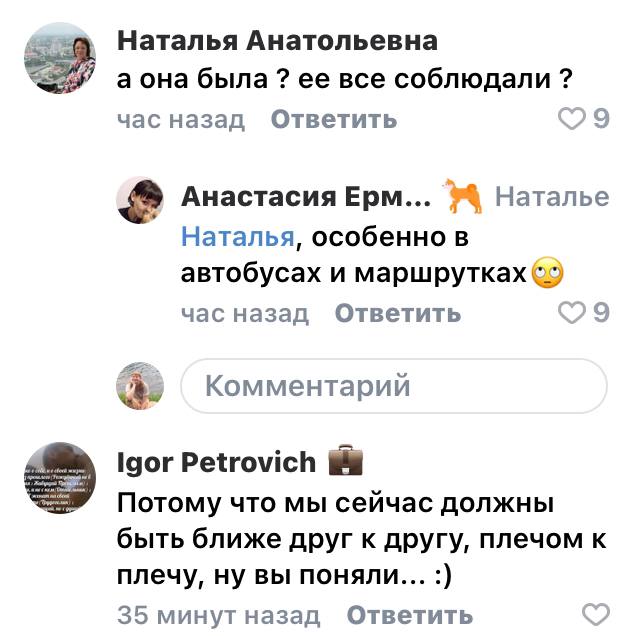 В соцсетях пишут, что никогда не было никакой дистанции в маршрутках, хотя в магазинах ее пытались соблюдать. Двойные стандарты тюменцы всегда критиковали, теперь повода не будет.