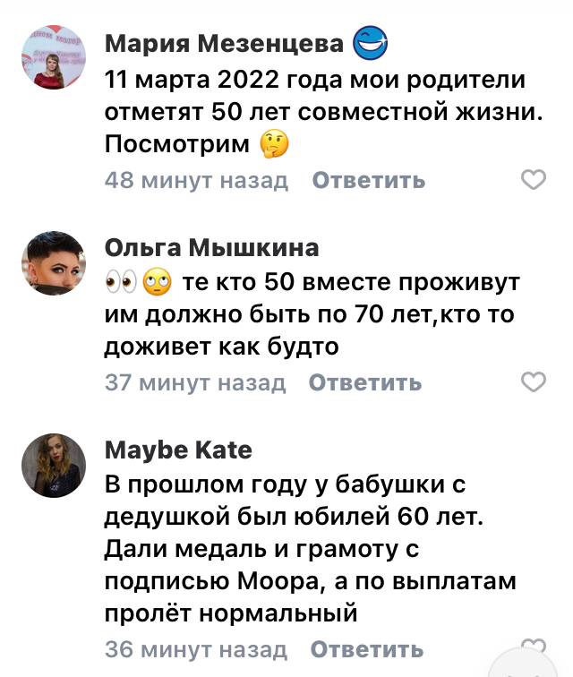 В соцсетях пишут, что институт семьи надо укреплять всеми средствами. К сожалению, премии к своему семейному юбилею получат немногие дожившие до 70-75 лет.