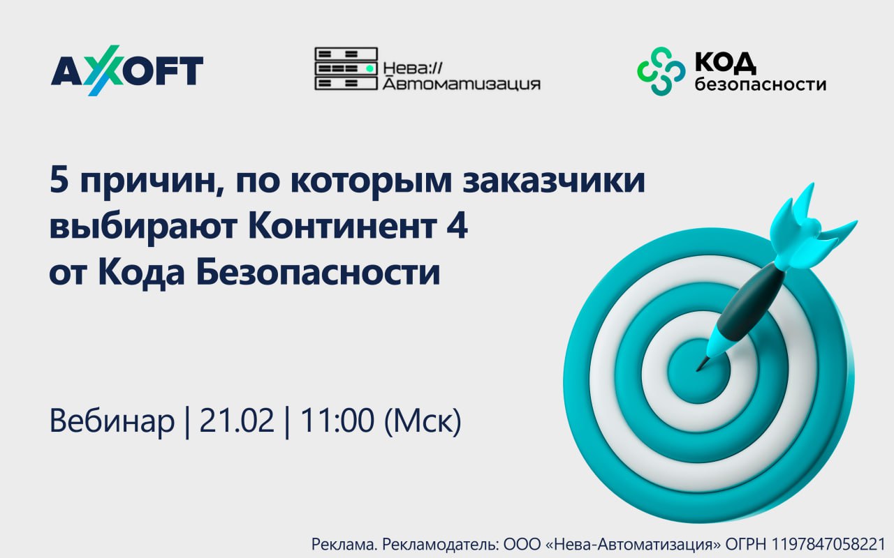 🗓21.02 в 11:00 (Мск) приглашаем на вебинар «5 причин, по которым заказчики выбирают Континент 4 от Кода Безопасности» - многофункциональный NGFW/UTM с поддержкой алгоритмов ГОСТ.