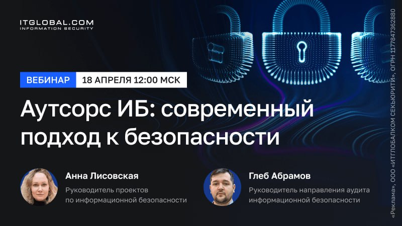 О том, как делегировать задачи по обеспечению ИБ, эксперты ITGLOBAL.COМ Security расскажут на вебинаре «Аутсорс ИБ: современный подход к безопасности».