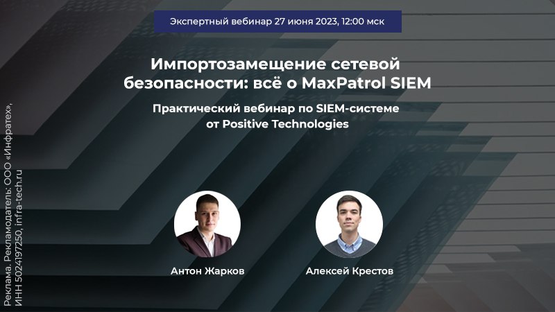Регистрируйтесь на вебинар «Импортозамещение сетевой безопасности: всё о MaxPatrol SIEM», который пройдёт 27 июня в 12:00 (мск).