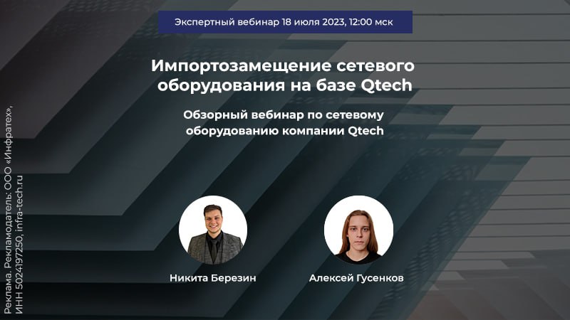 Регистрируйтесь на вебинар «Импортозамещение сетевого оборудования на базе Qtech», который пройдёт 18 июля в 12:00.