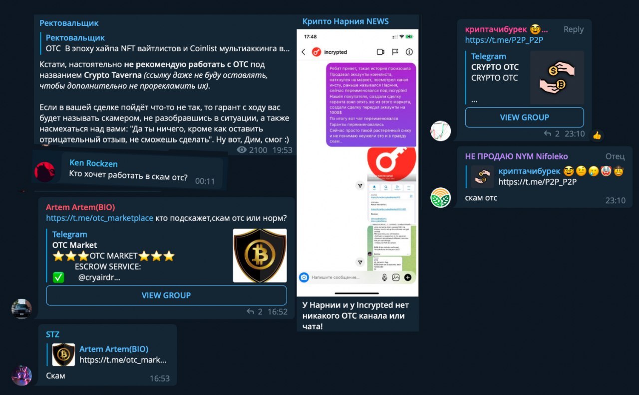 Например, у моего коллеги Ректовальщика возникли траблы с Сrypto Taverna OTC. Пусть у меня всё было ок с ними - рекомендую воздержаться юзать их услуги.