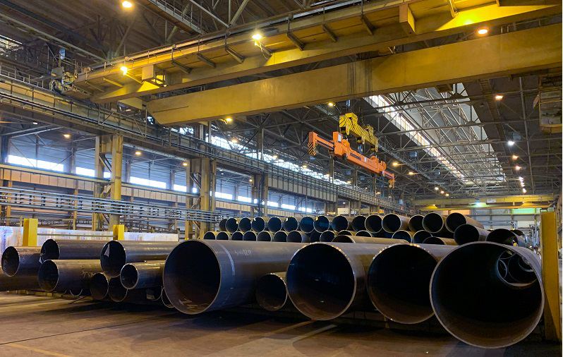 Трубы большого диаметра произвели на Ижорском трубном заводе, Колпино. Использовать их будут в качестве опор и вертикальных распор олимпийского стадиона.