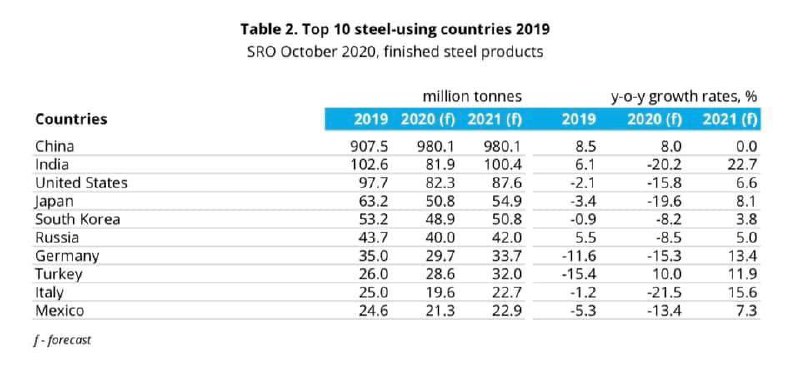 «Worldsteel прогнозирует, что в 2020 г. мировое потребление стали составит 1725,1 млн. т, что только на 2,4% уступит показателю прошлого года.