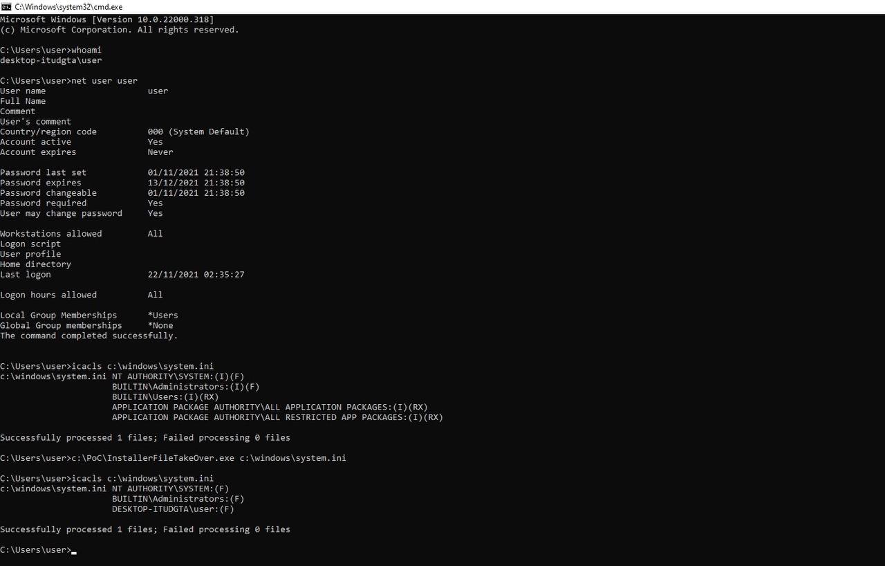 Уязвимость была обнаружена при анализе патча для CVE-2021-41379. Мелкомягкие не смогли корректно исправить уязвимость, что в итоге привело к появлению обхода их патча.