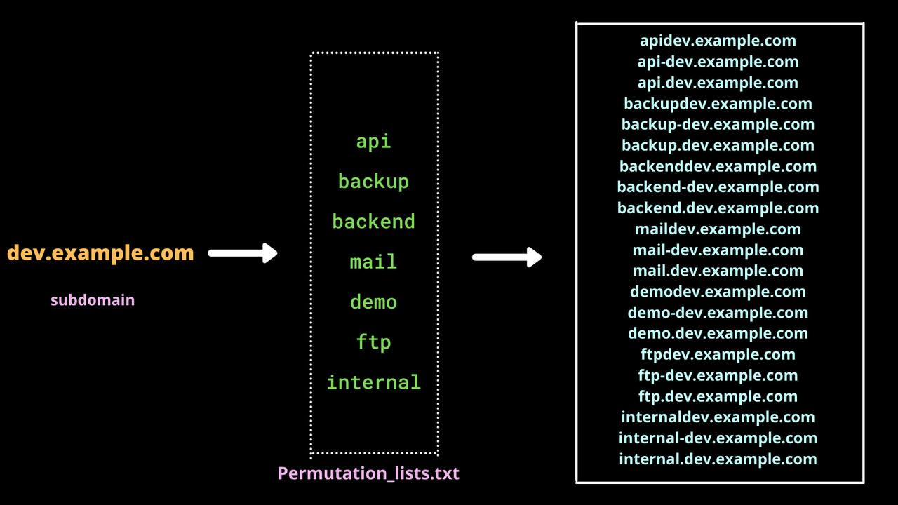 Чтобы найти еще больше поддоменов для атаки, мы можем сгенеририровать комбинации или перестановки уже известных нам поддоменов.