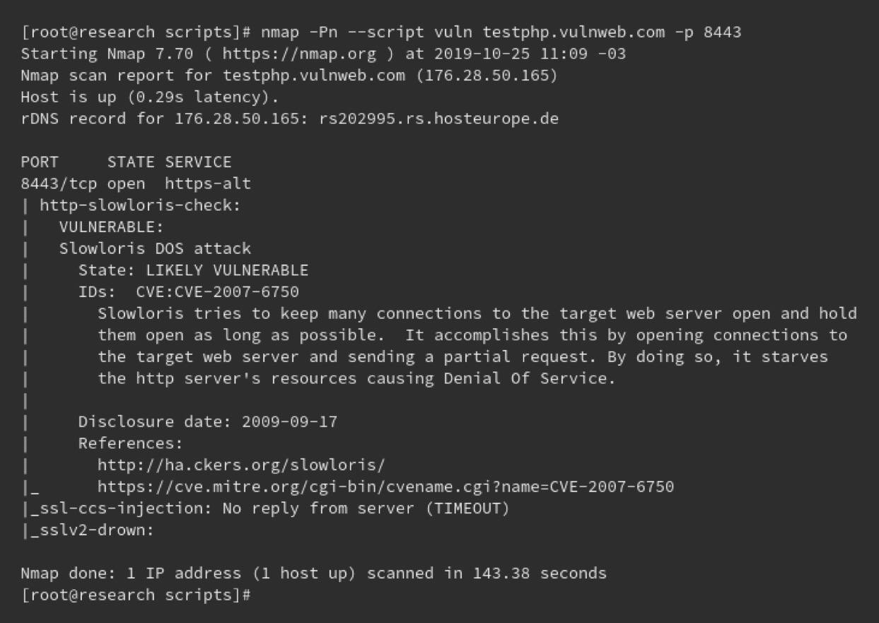 Три наиболее популярных скрипта для обнаружения уязвимостей/CVE, найденных в Nmap NSE - это nmap-vulners, vulscan и vuln, которые позволят вам обнаруживать соответствующую информацию CVE на удаленных или локальных хостах.