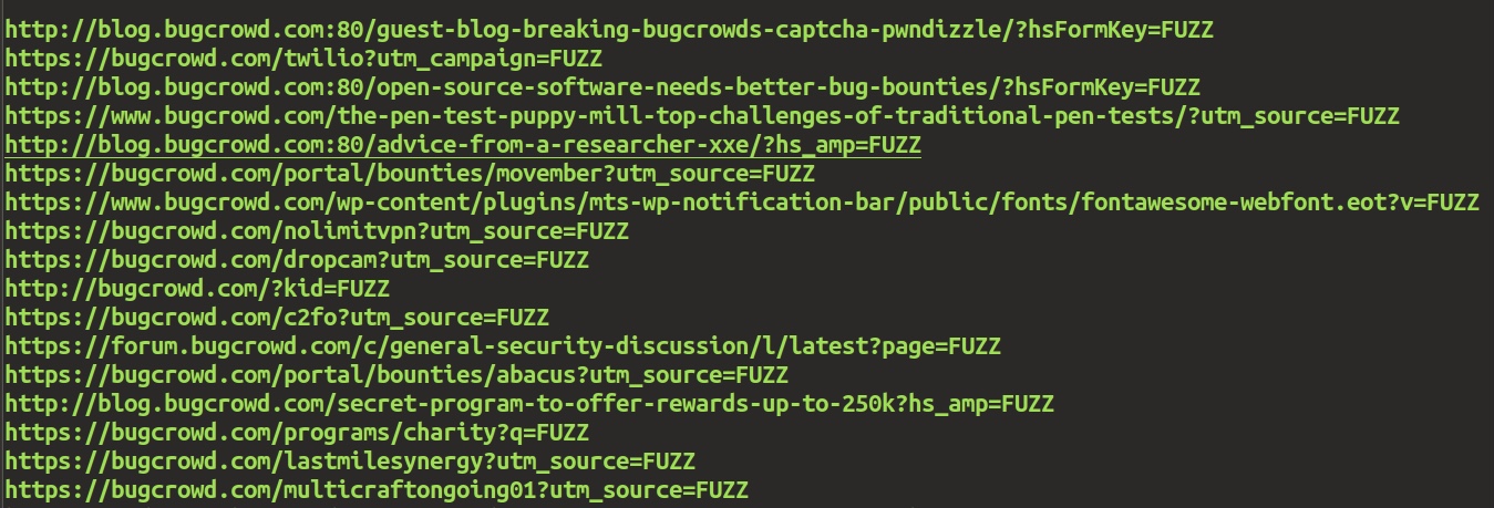 В результате, получим список URL адресов вместе со скрытыми параметрами: