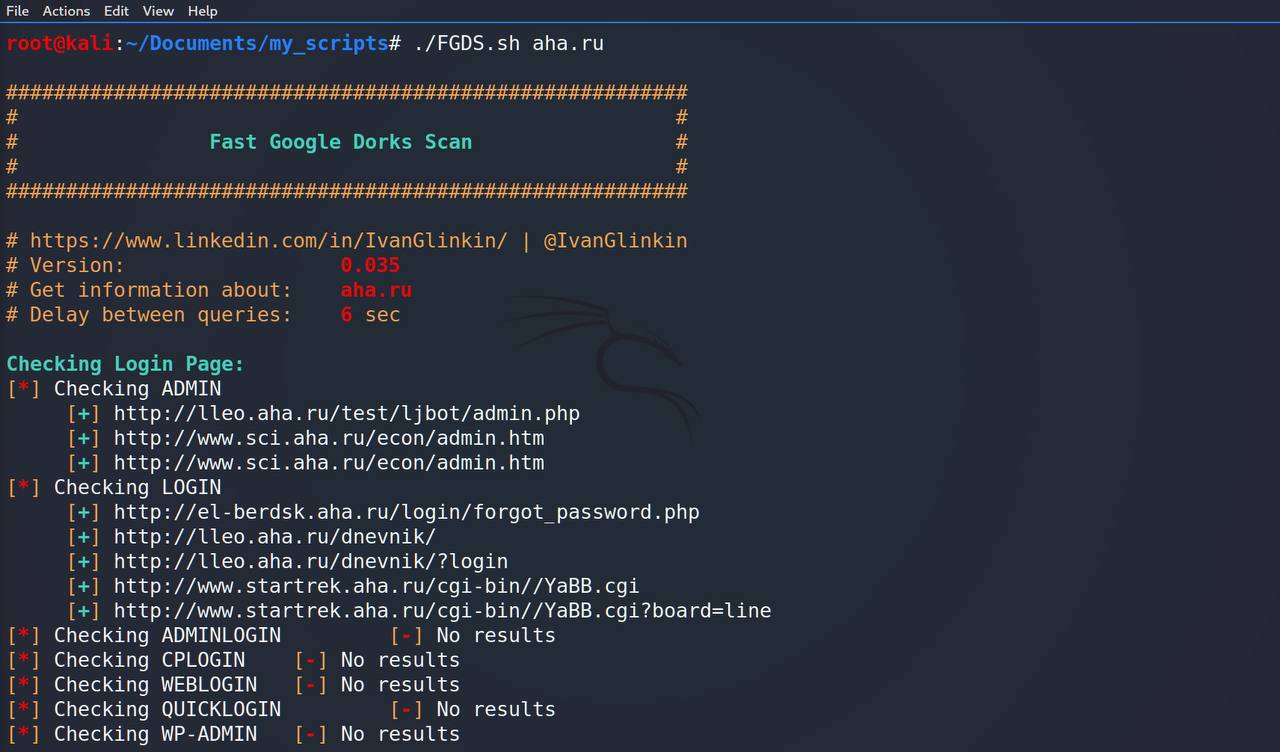 🔖 Быстрое сканирование сайта с помощью Google дорков