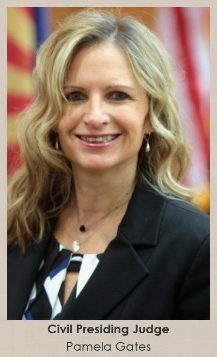 Судья Памела Гейтс была назначена губернатором Яном Брюером в сентябре 2009 года для работы в Верховном суде округа Марикопа. Судья Гейтс в настоящее время является председательствующим судьей по гражданским делам. До перехода в Гражданский департамент в июне 2018 года судья Гейтс работала помощником председательствующего судьи Уголовного департамента.