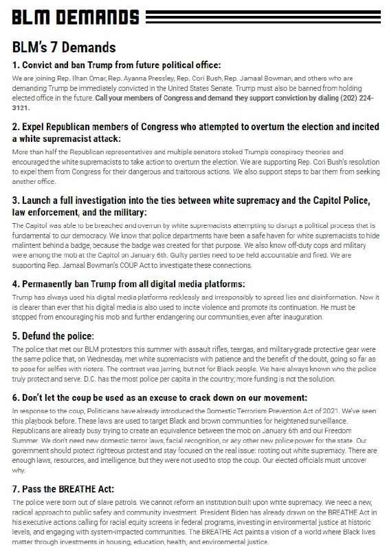 Black Lives Matter опубликовали обновленный набор требований на своем веб-сайте: