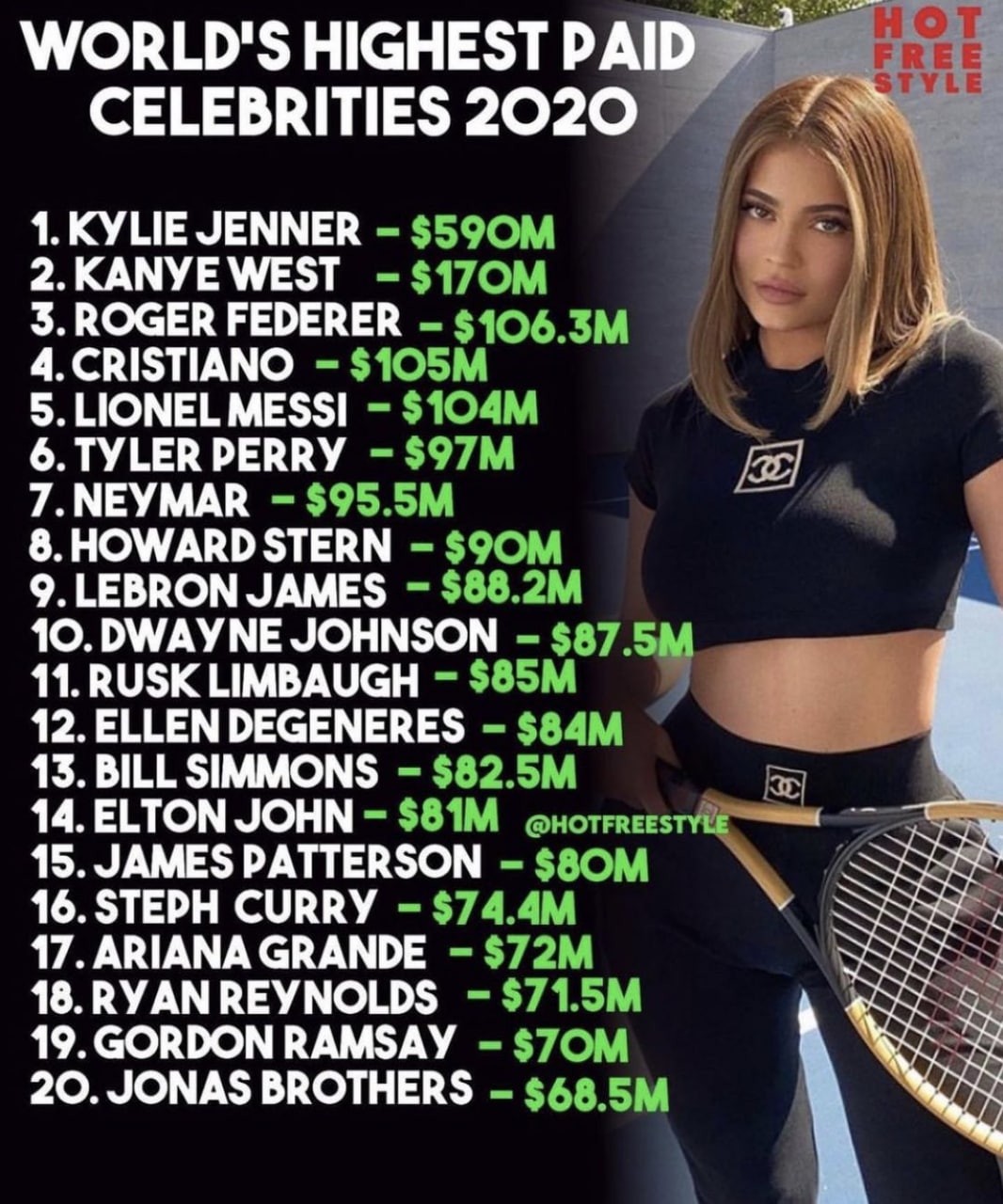 Недавно американский Forbes опубликовал Топ 100 самых высокооплачиваемых звезд по итогам 2020 года. Первая двадцатка выглядит так: