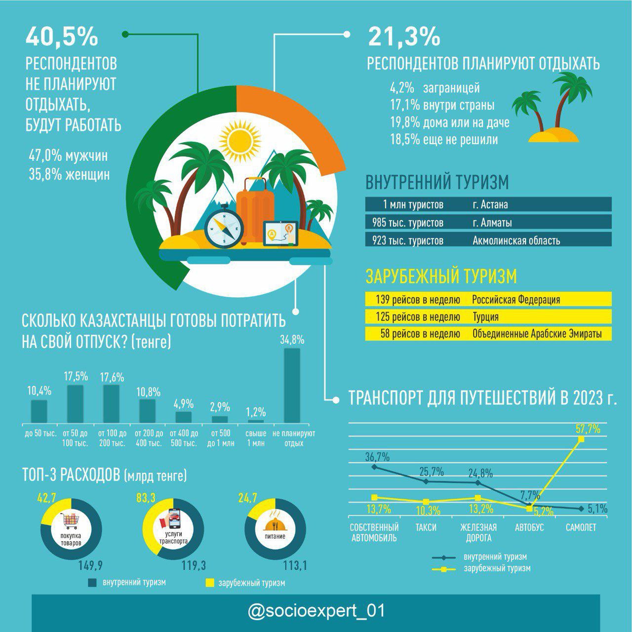 Казахстанцы с нетерпением ждут лето и сезон отпусков. Институт общественной политики изучил мнение жителей Казахстана, где они собираются отдыхать и сколько готовы потратить на свой отдых.