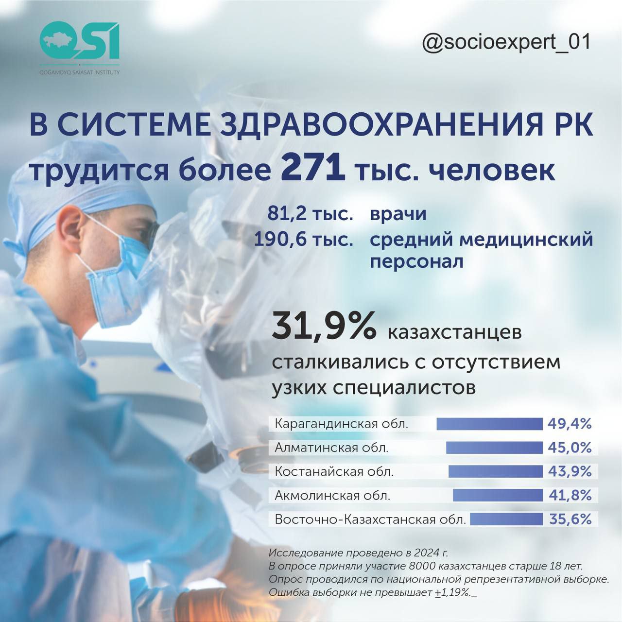 🩺Сегодня в Казахстане отмечается День медицинского работника, который напоминает нам о важности и значимости их труда для нашего общества. На сегодняшний день в системе государственного здравоохранения трудится более 271 тыс. человек, из них 81,2 тыс. – врачи, 190,6 тыс. – средний медицинский персонал (СМП).