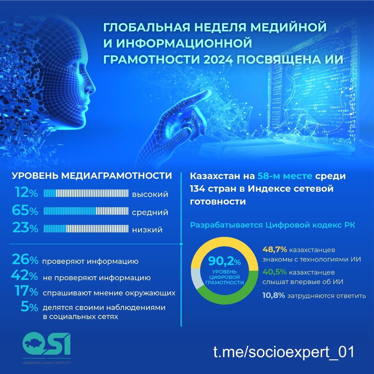 💡По данным Бюро национальной статистики, в 2023 году уровень цифровой грамотности в Казахстане достиг 90,2%, с наибольшими показателями в Астане (97%) и Алматы (95,5%).