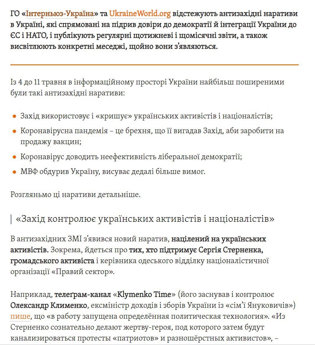 Об этом поделились коллеги из Klymenko Time, которых в своих отчетах соросята приравняли к «антизападным»