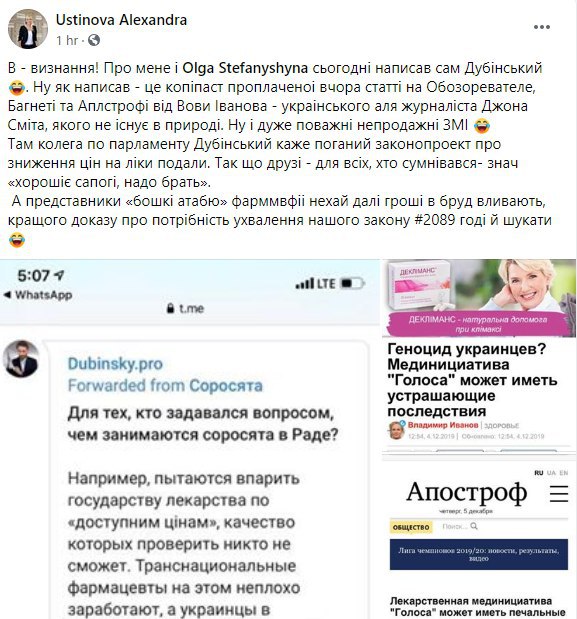 Настойчиво рекомендуем вам обратить внимание на законопроект 2089 авторства Оли Стефанишиной и Саши Устиновой. Журналисты уже писали, что закон позволит поставить на прилавки украинских аптек сотни неизвестных единиц из стран третьего мира, в том числе некачественные и даже опасные для жизни лекарства. И данную продукцию никто проконтролировать не сможет. Ведь у государства эту функцию забирают.