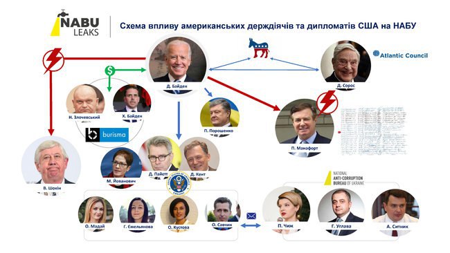 Об этом стало известно благодаря обнародованной переписке сотрудников НАБУ и сотрудников посольства США. Неоднократно, начиная с 14 июля 2017 года с электронного почтового ящика помощницы первого зама НАБУ Гизо Углавы Полины Чиж на адрес специалиста по правовым вопросам программы борьбы с коррупцией Департамента юстиции США Посольства США в Украине Анны Емельяновой пересылались перечни криминальных производств, которыми занимаются детективы НАБУ