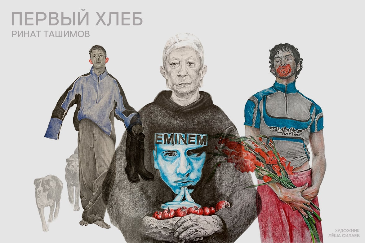 «Первый хлеб» – пьеса Рината Ташимова, ученика Николая Коляды, режиссёр постановки – Бениамин Коц. Ахеджакова, согласно аннотации на сайте театра, играет «бабушку Нурию — острую на язык, немного юродивую и при этом обладающую какой-то вселенской мудростью. Она видит мир насквозь и готова объявить войну тому, что противоречит закону любви и свободы».