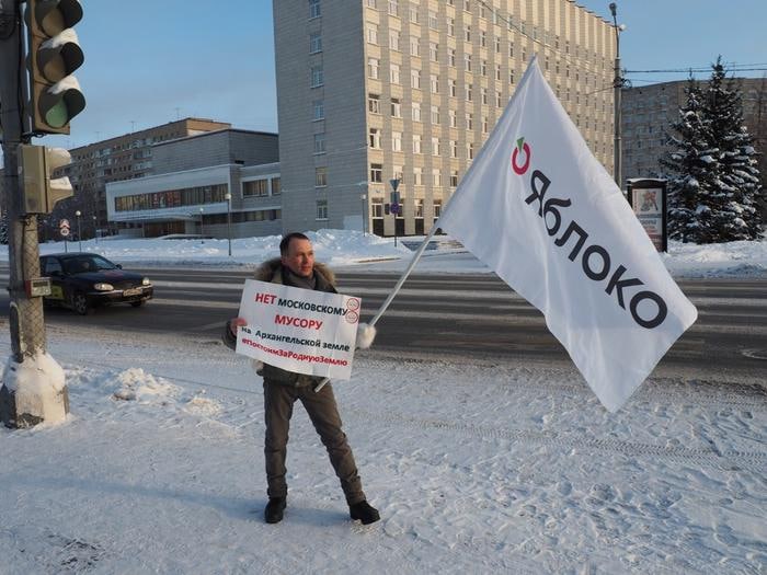 Фото: Алексей Кузнецов в пикете против строительства полигона на Шиесе, 2019 год.