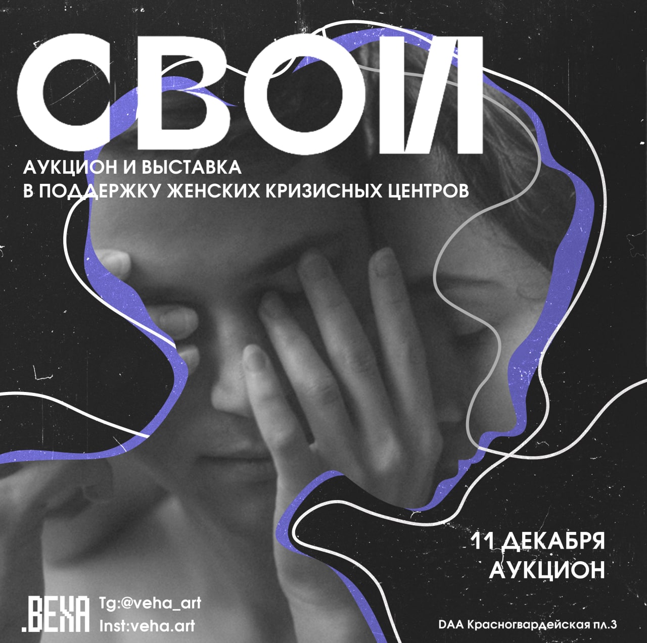 Благотворительный аукцион в поддержку кризисных центров для женщин пройдет 11 декабря в 19:00, онлайн в нашем телеграм-канале @veha_art и офлайн в месте проведения выставки.