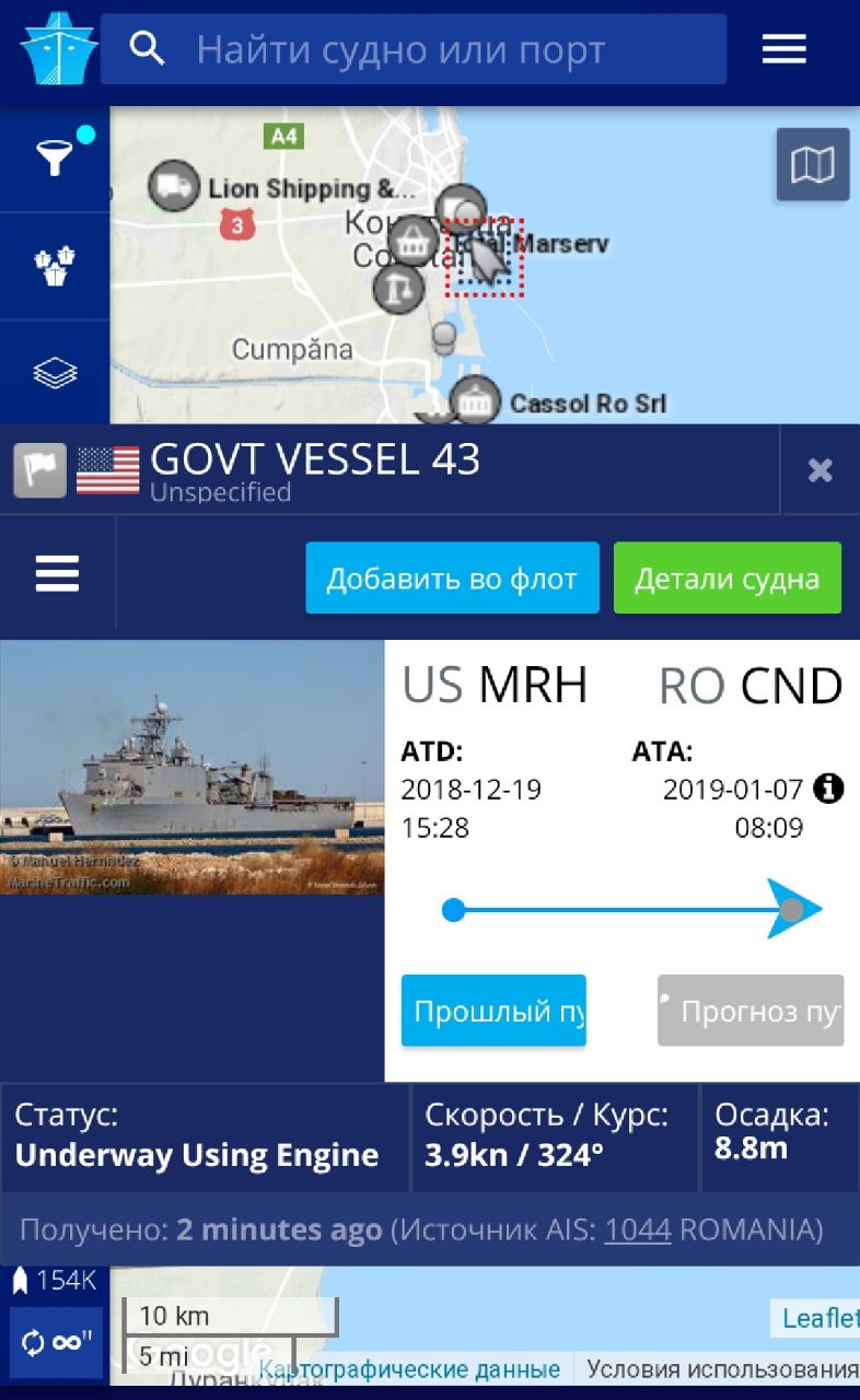 Значит информация подтвердилась и уже до конца суток американский пароход доковыляет до Чёрного моря. А далее скорее всего возьмёт курс в румынский порт Констанца.