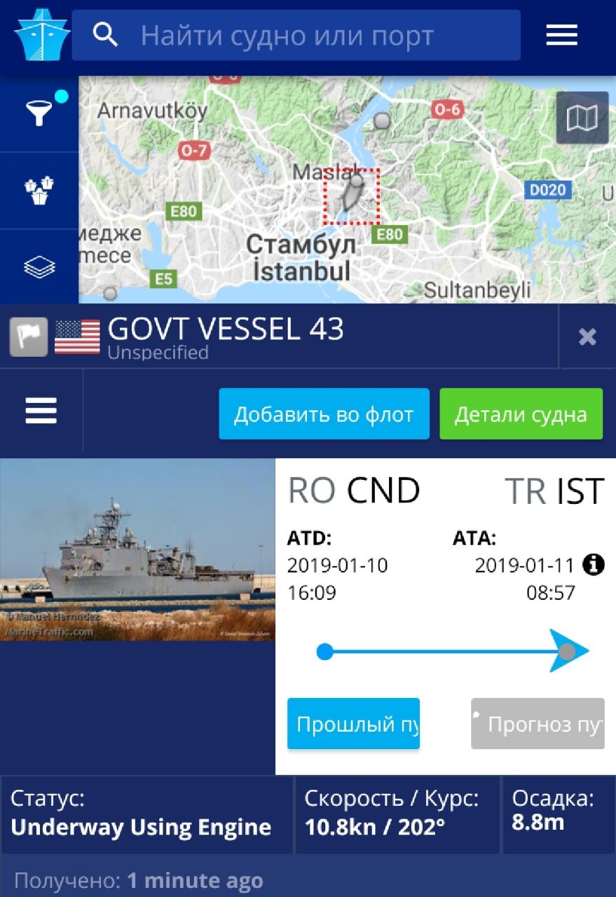 🇺🇸 Тем временем десантный пароход "Форт МакГенри" ВМС США, как ранее и говорилось, пошёл на выход из Чёрного моря и уже завершает проход пролива Босфор.