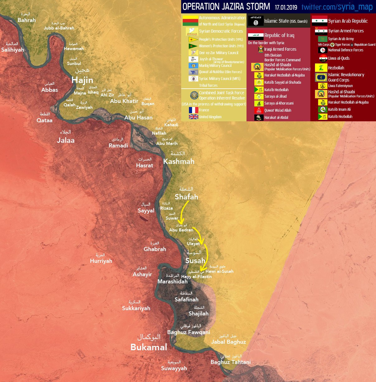 🇸🇾 Обстановка на востоке Сирии в так называемом "Хаджинском кармане", где подконтрольными ИГИЛ осталось всего четыре деревни. Как показывает практика курды могут их брать месяцами, но скорее всего уже к началу февраля все закончится.