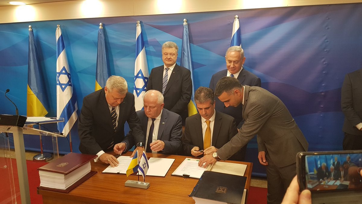 🇮🇱🇺🇦 Сегодня в Израиле в ходе визита президента Украины Петра Порошенко состоялось подписание договора о зоне свободной торговли, предусматривающего отмену ввозных пошлин на 80% украинских промышленных товаров.