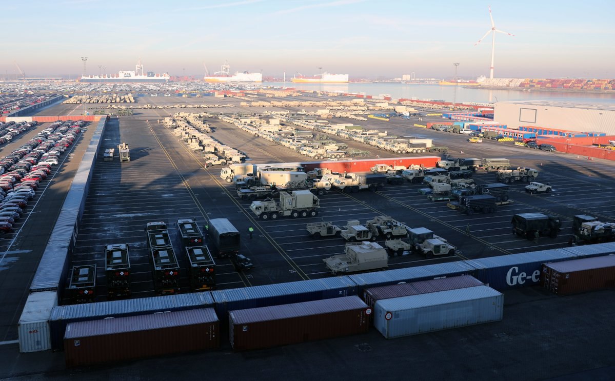 🇺🇸 В бельгийский порт Антверпен продолжает прибывать техника 1 бронетанковой бригадной боевой группы 1 пехотной дивизи ВС США для последующей отправки в Германию, Латвию, Польшу, Румынию и замены там 2 бронетанковой бригадной боевой группы ВС США.