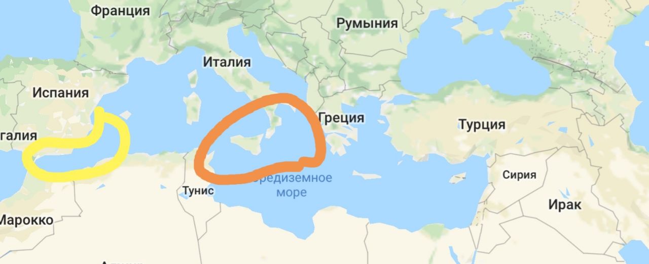 Вчера помимо учения ОВМС НАТО "Открытое море-2019" (на карте бордовый цвет) началось ещё одно довольно интересное плановое учение уже минно-тральных сил Альянса "Spanish MINEX" (на карте жёлтым цветом), цель которых по всей видимости отработать вопрос обеспечения бесперебойного судоходства через Гибралтарский пролив. Сроки проведения данных учений совпадают (оба с 29 апреля по 10 мая), что только подкрепляет мысли об их связи с грядущими перевозками подразделений ВС США через Средиземное море в рамках "Saber Guardian".