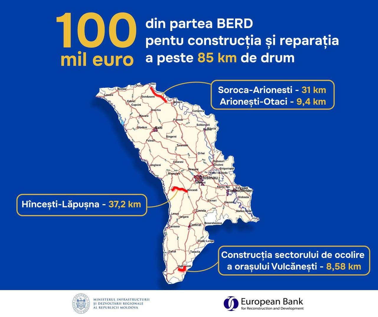 BERD a aprobat extinderea unui contract de finanțare, în valoare de 100 mln. euro, pentru construcția și reparația a peste 85 de km de drum: