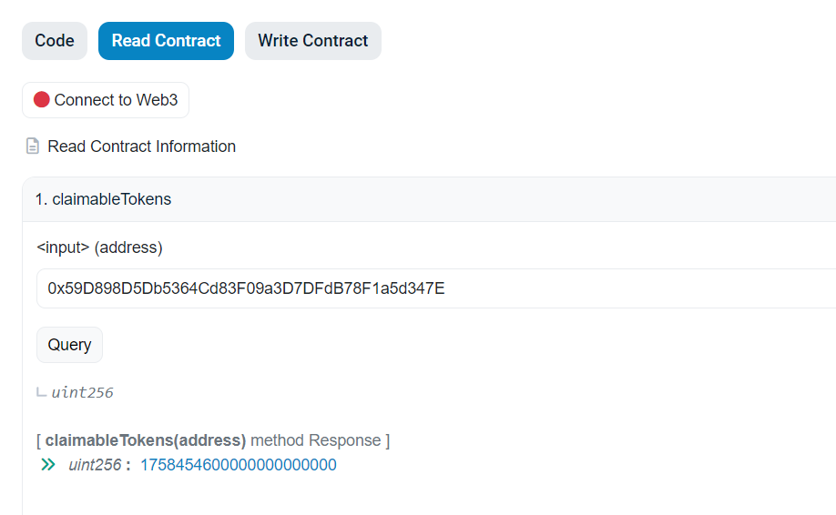 2. Выбираем функцию ClaimbleTokens