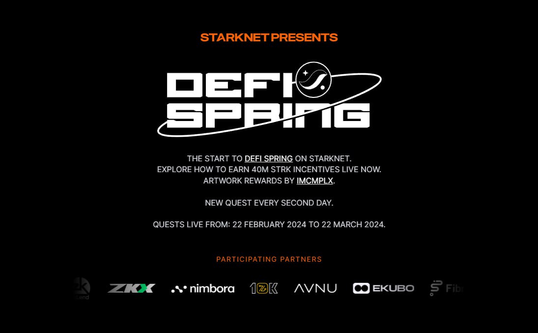 Все полученные токены Starknet я пустил в расход на Binance в первый же день клайма дропа. После того как я узнал о Starknet DeFi Spring (програма стимулирования для DeFi на Straknet (подробнее)) я решил вернуть часть средств обратно в экосистему Starknet и пофармить токены ещё немного, но уже точно понимая, что получу, а не надеясь на щедрость Starknet Foundation. Для работы я выбрал 3 протокола в которые и распределил средства (писал о них в этом посте): Ekubo, Nostra, StarkDefi.