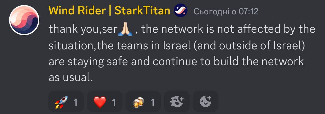 Команда Starkware которая разрабатывает Starknet находится в Израиле из-за чего есть много непонятных вкидов в интернете. В двух словах с командой всё ок, разработка продолжается.